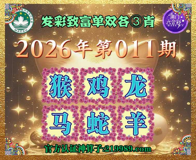 011期:〖发彩致富〗 🪢单双各③肖🪢【猴.鸡.龙.马.蛇.】开:羊11