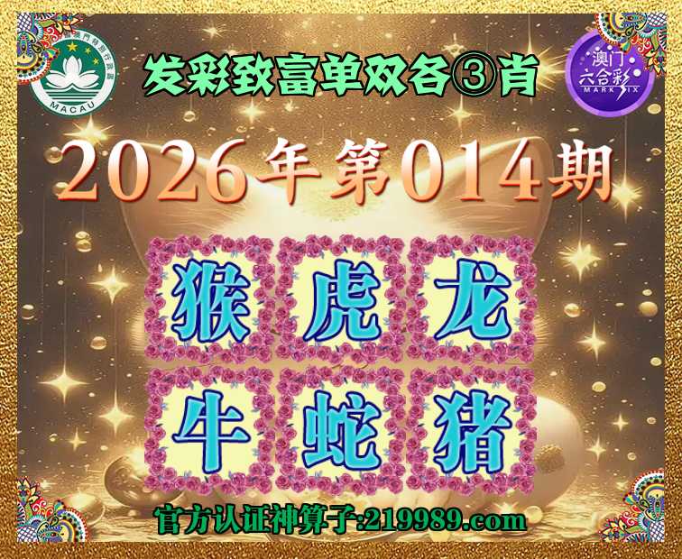 014期:〖发彩致富〗 🪢单双各③肖🪢【猴.虎..牛.蛇.猪】开:龙26