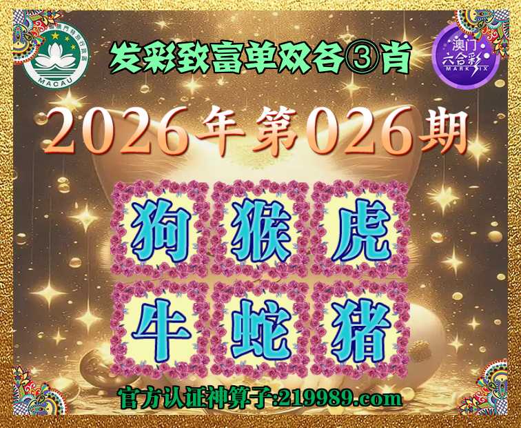 026期:〖发彩致富〗 🪢单双各③肖🪢【狗.猴.虎.牛.蛇.】开:猪19