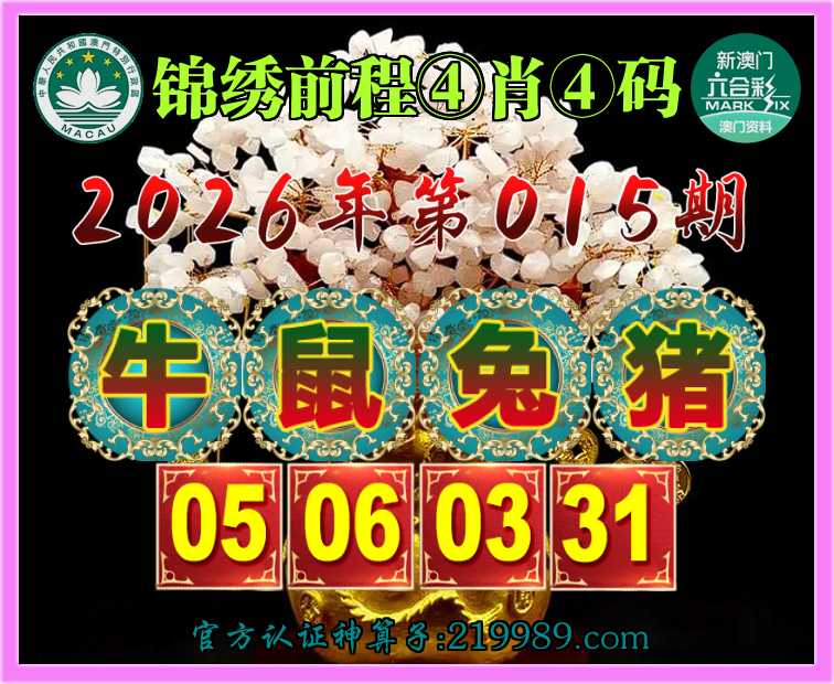 015期:【锦绣前程】 🧤④肖④码🧤【牛鼠兔】【05.06.03.31】开:猪31