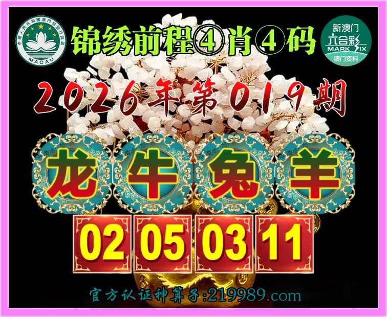 019期:【锦绣前程】 🧤④肖④码🧤【龙牛兔羊】【02.05.03.11】开:猴46