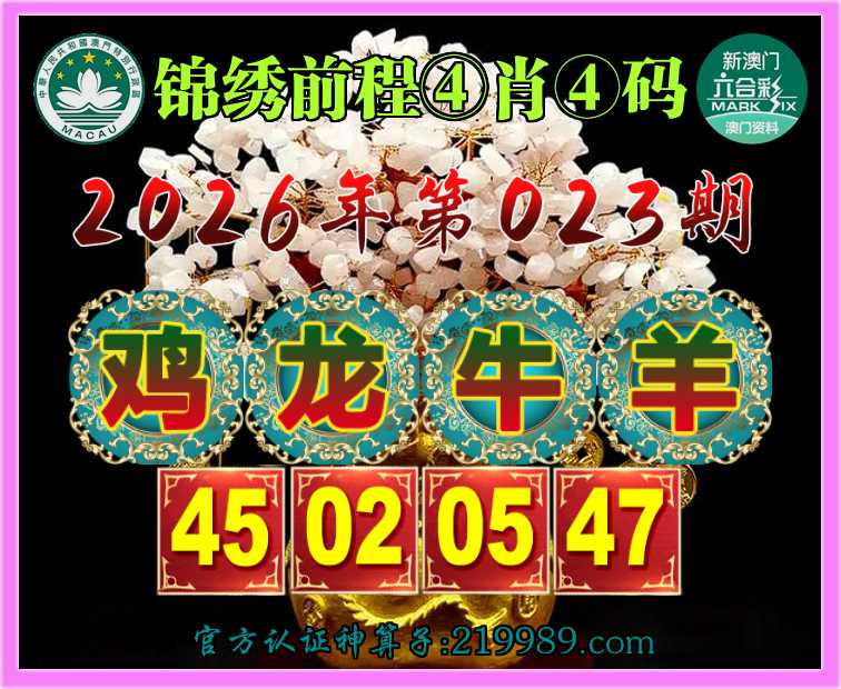 023期:【锦绣前程】 🧤④肖④码🧤【鸡龙牛】【45.02.05.47】开:羊47