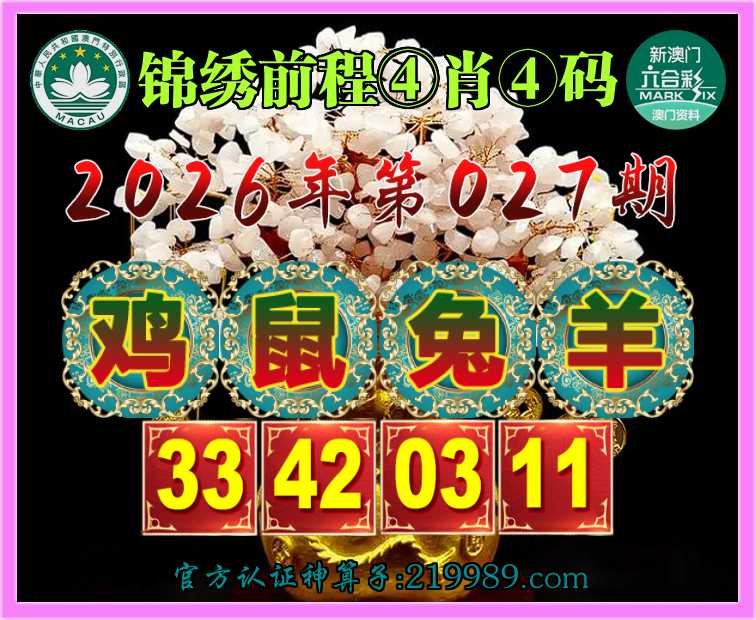 027期:【锦绣前程】 🧤④肖④码🧤【鼠兔羊】【33.42.03.11】开:鸡45