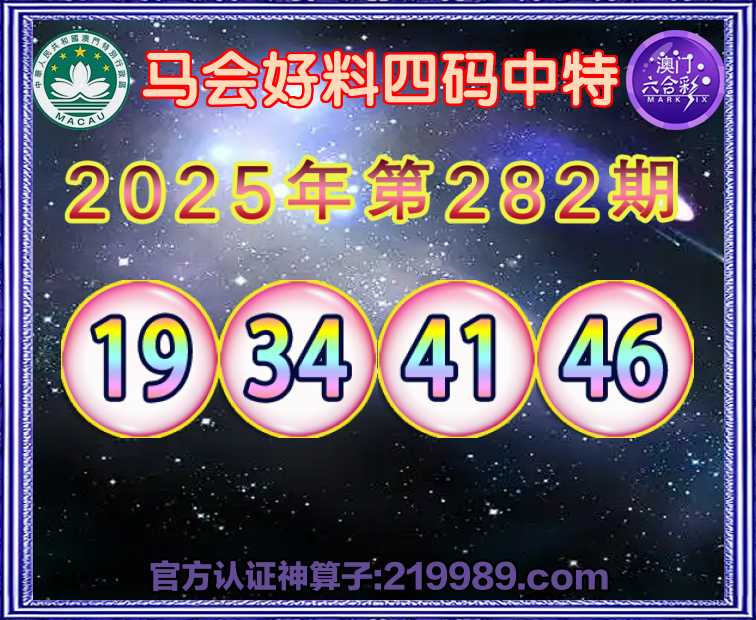 282期:《马会好料》 😜四码中特😜【19.34.41.46】开:41
