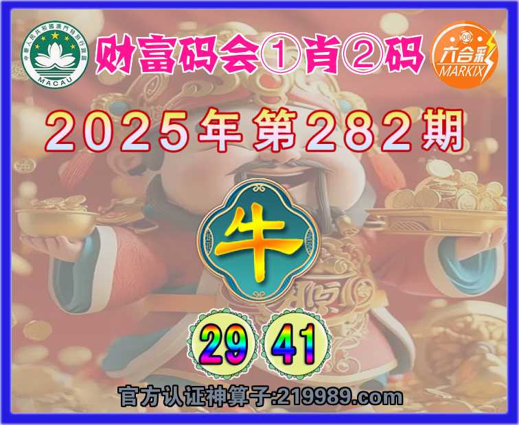 282期:《财富码会》 ☝️①肖②码☝️【】【29.41】开:牛41
