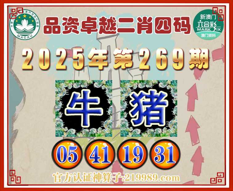 269期: 品资卓越 ♥️二肖四码♥️【牛】【05.41.19.31】开:猪31