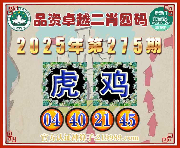 275期: 品资卓越 ♥️二肖四码♥️【虎】【04.40.21.45】开:鸡45