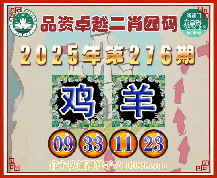 276期: 品资卓越 ♥️二肖四码♥️【羊】【09.33.11.23】开:鸡09