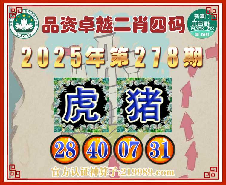 278期: 品资卓越 ♥️二肖四码♥️【猪】【28.40.07.31】开:虎28