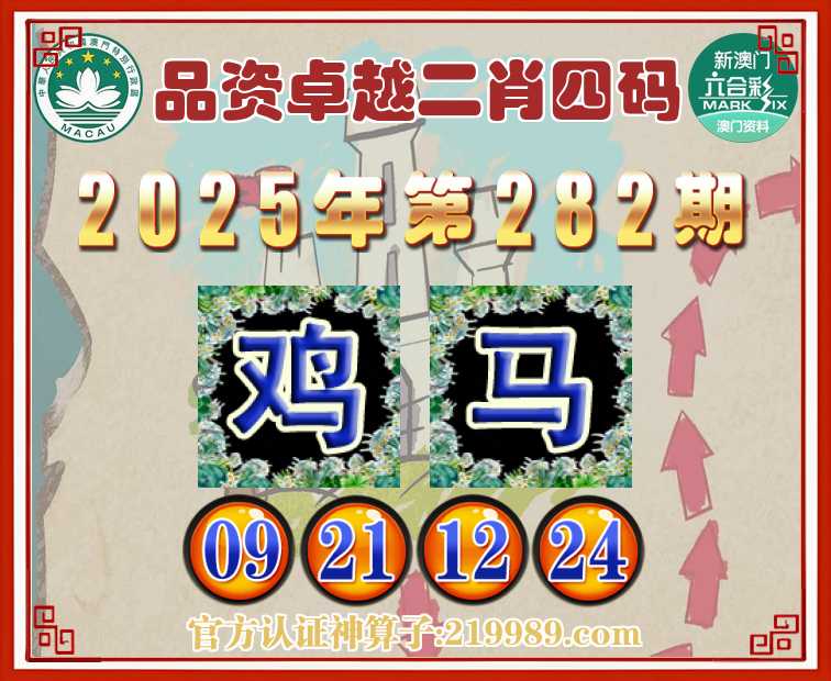 282期: 品资卓越 ♥️二肖四码♥️【鸡马】【09.21.12.24】开:牛41